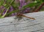 A Common Carder Bee just about still active on Perennial Sow Thistle in Wednesday's slightly milder weather, but more surprisingly still a couple of Odonata active - unfortunately not close enough to identify to species but distinctive enough. The first directly out from the display board at the site of the ex-hide, possible hunting the small black flies interested in sharing my lunch, the other hunting the long waterbody along the western side of the A Bog's Life trail.