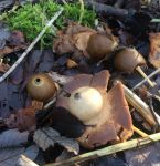 I found a few interesting fungi that I have no idea what they are and the patch of Common Earthstars I found last week had increased to over 30 specimens. Any help with ID fungi in my attached photos would be much appreciated. I think the red one is a type of slime mould.