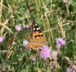 At least two Painted Lady butterflies amongst excellent numbers of Small Tortoiseshell, Peacocks, several Common Blue and a Comma along the western edge of Little Woolden Moss NR.