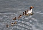 Goosander with 9 large young on the Irwell adjacent Close Park this afternoon, possibly the same brood I reported several weeks ago. If so it's great to see them doing well.