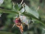 Several Green Shield Bugs Several species of Hoverfly, unidentified