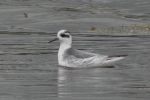 Having a morning free today I decided on the short journey over to Conwy RSPB. The weather was not nice driving over despite a forecast slightly better than it actually turned out! Once there it was drizzly but not too bad. I went straight to the boardwalk and along to the reedbed screen just to the righthand side. There on the lagoon, as expected from the birdnews updates, was a Grey Phalarope. This bird has been present at least 5 days, being found last Thursday evening. It was always at least halfway out across the lagoon and even walked up onto the opposite shore, making it difficult for photographs. On the water it was constantly feeding using that distinctive spinning technique as phalaropes do. A great bird for March and well worth seeing