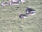 Two Russian White-fronted Geese have been present, in the general area, for several weeks. The rough tracks and bridleways are caked in mud, so wellies are essential. Finally caught up with the goose flock, north of the farm, right by the river. One of the White-fronts was found, mingled in with the Greylags although probably a third of the flock were obscured by bushes/trees as I was scoping from around 750 metres away. Hopefully, the second bird was still around and simply out of view.