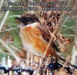 Pair of Stonechat adjacent to the track to Ticky Bikes, also 1 Buzzard 1 Grey Wagtail