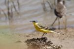 4 Eastern Yellow Wagtails (both macronyx and taivana - photo shows a taivana with rather thin yellow supercilium and obvious gorgeous green back indicating an adult)