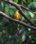 Attached are the two raptors (the Shikra and one of the Rufous-winged Buzzards) which were hanging round very close to the camp site, and one of the three Orange-breasted Trogons which along with the Banded Broadbill and the tentative Alstroms Warbler and a Van Hasselts Sunbird were the choice species of this particular trip.