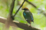 Their final stop was at 09.15 in riverine forest habitat by the Chi River at Seraphum hoping for the return of Blue-winged Pittas to this regular site which they monitor for this fine species. Here was success at last with two birds which responded and showed to brief playback. (Record photo attached). The only other species of note here among 16 species logged was a single Glossy Ibis feeding in a flooded farm field.