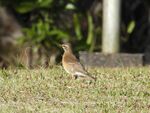 Paul has been requested by Phillip Round to forward as many photos as possible of our female Black-breasted Thrush for critical assessment by leading authorities to eliminate it as far as possible from being the first record of Grey-backed Thrush. Although the similarity between females of these two species is striking I am hoping that our original identification might stand based on what appear as consistent differences in mantle tones and bill colour; - however because of our inexperience and not having any clear idea of the variation parameters within each species as regards ageing sexing or moult strategy for us it remains a case of wait and see. We hope for the finders of last weeks definate Grey-backed Thrush that their bird will stand as the first record.