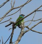 We were struggling to find anything approaching a decent reedbed and failed to find any acrocephalus or locustella species, however while we were bemoaning the situation Barb drew our attention to a distant green bird perched high on a bare tree top. Through binoculars it looked good for a likely Lineated Barbet (of which we had heard any number).