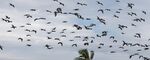 50 Oriental Pratincoles (These birds and probably Small Pratincoles have young on the site and opportunistic Brahminy Kites are patrolling with eyes for easy prey - attached is a photo of an Oriental Pratincole bombing such an interloper).