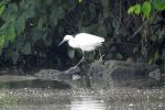 Little Egret 1 feeding along the Trafford side of the Manchester Ship Canal. First sighted from Langland Waterside at 09.20, it moved west to below the Travelodge, last seen flying north over the Eccles ETW at 10.20, where it was mobbed by Crows and lost to view behind trees.