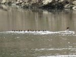 Running round Chorlton Ees yesterday (Saturday) morning, I was surprised to see a group of 12-15 Goosanders on the Mersey beneath the Jacksons Boat bridge. I'm guessing females and young, although must admit I'm not sure what males would look like in eclipse.