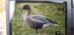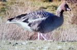 The Pink-footed Goose present at 2:10pm on the west side of the Rochdale Canal viewable from the towpath c300 yards north of the Hopwood Arms, Slattocks