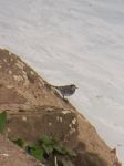 Could be a Snow Bunting, but without getting a feel for size etc its a tricky one. Small Waders like Sanderling have similar black and white wing patterns too.