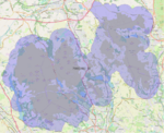 Basically, all the WPM SSSI plus a one kilometre buffer and an extension in places as deemed necessary by Natural England. This encompasses not only the GM section across the south of the WPM, but a huge area from Rivington and Anglezarke (including the reservoirs) in the west, through the moors of Withnell, Anglezarke, Rivington and Winter Hill through to Belmont, Roddlesworth and Entwistle and on to include Holcombe Moor, Haslingden Grane and environs in the east (all the areas coloured blue on the map below).