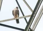 Superb juvenile Peregrine on a pylon at around 10am today just off Bee Fold Lane. Very vocal and had a bit of an altercation with 4 magpies. Lovely markings and a red ring on the right leg.