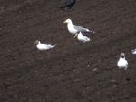 Numerous Mistle Thrushes on the ploughed fields.
