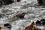 Heron eating newts.