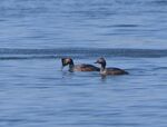 7 Black-necked Grebes still present but elusive as they were feeding in their tight flock close to the shore along East Bay